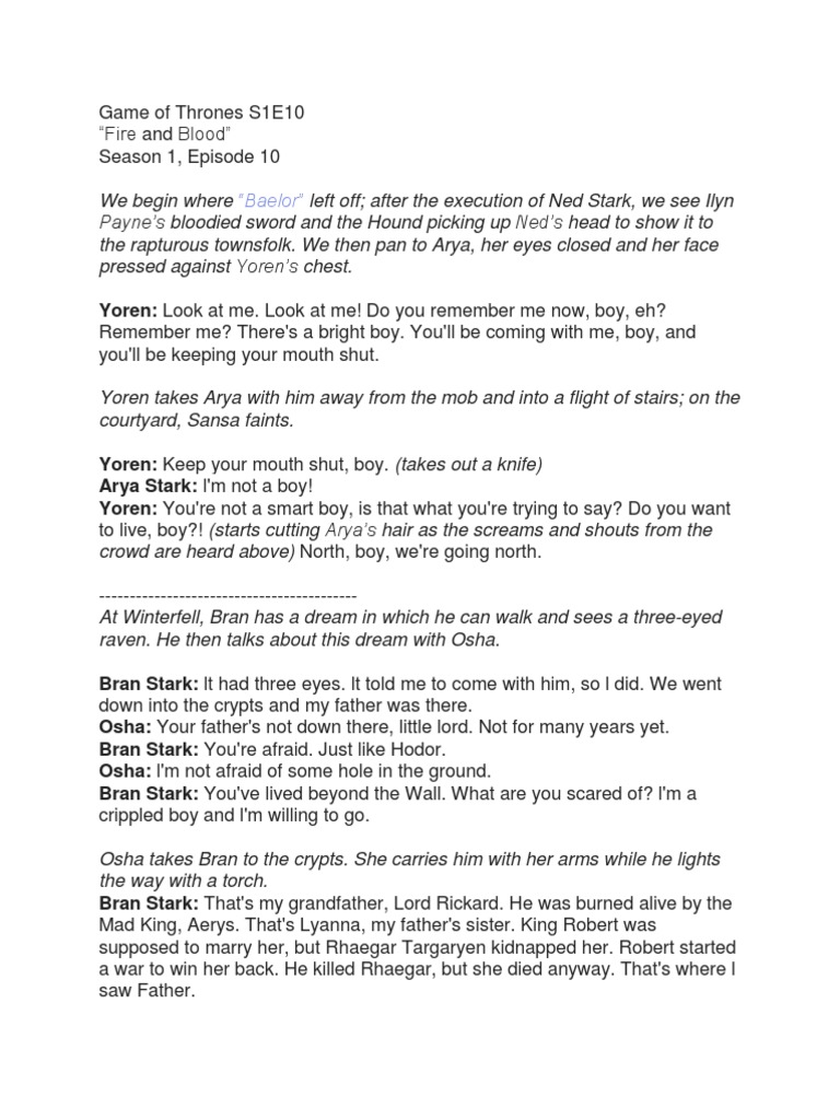 Game of thrones pdf script. We did not find results for: Check spelling or type a new query. Maybe you would like to learn more about one of these?